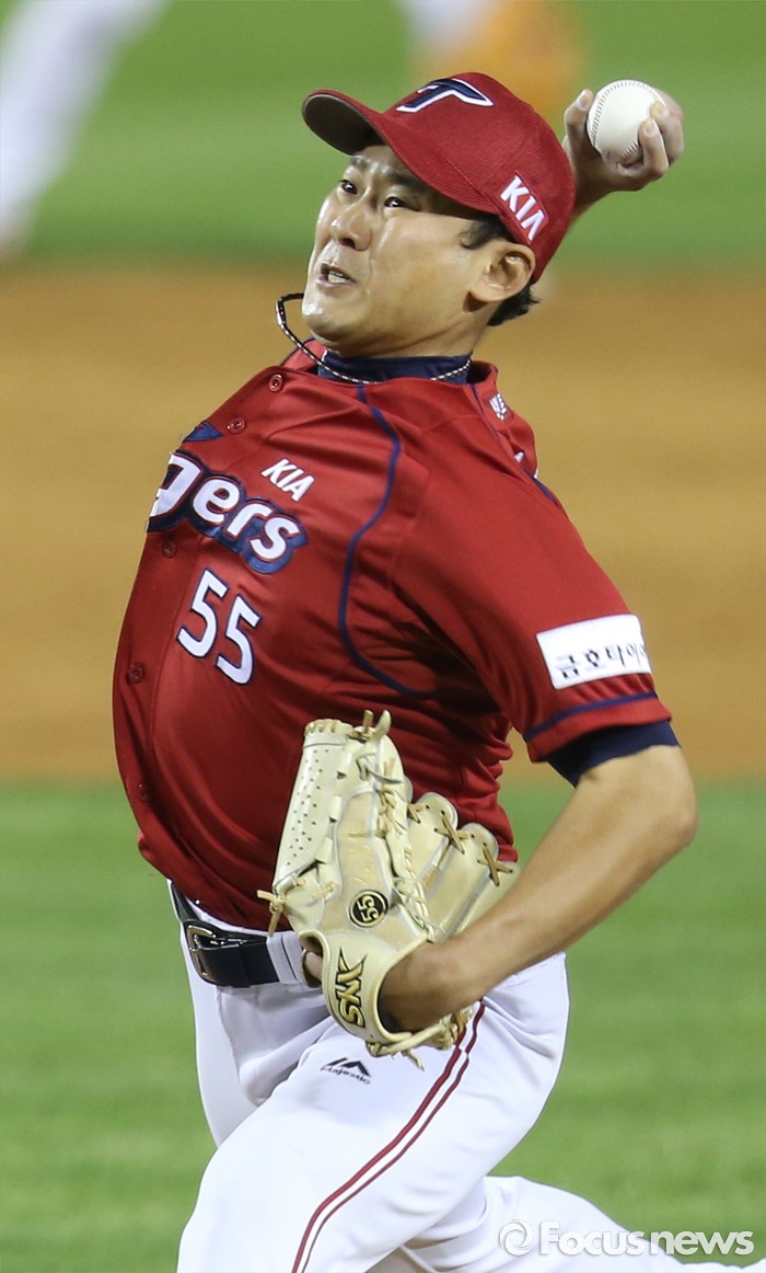 (서울=포커스뉴스) 31일 서울 잠실구장에서 열린 2016 프로야구 KIA-LG 경기에서 KIA 투수 김광수가 9회말에 투구하고 있다.