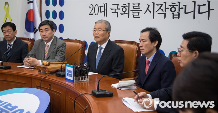 (서울=포커스뉴스) 김종인(가운데) 더불어민주당 비상대책위원회 대표가 1일 오전 서울 여의도 국회에서 열린 비상대책위원회의에서 모두 발언을 하고 있다. 왼쪽부터 진영 비대위원, 이종걸 전 원내대표, 김 대표, 우상호 원내대표, 양승조 비대위원