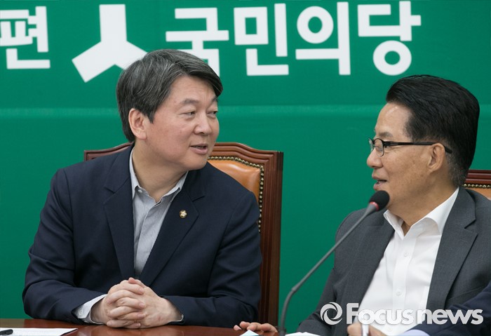 (서울=포커스뉴스) 1일 오전 서울 여의도 국회에서 열린 국민의당 최고위원회의에 참석한 안철수(왼쪽) 상임공동대표와 박지원 원내대표가 대화하고 있다.