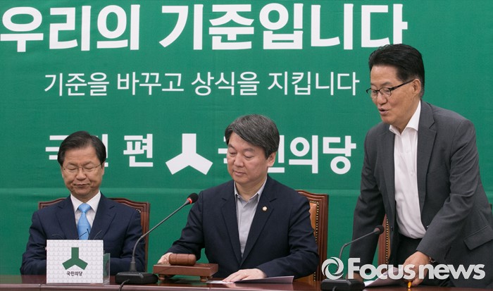 (서울=포커스뉴스) 1일 오전 서울 여의도 국회에서 열린 국민의당 최고위원회의에 안철수(가운데) 상임공동대표와 천정배(왼쪽) 공동대표, 박지원 원내대표가 참석하고 있다.