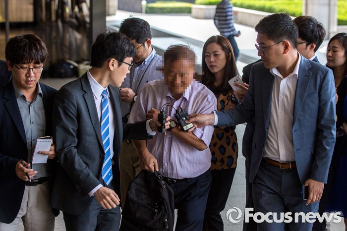 (서울=포커스뉴스) 옥시측으로부터 청탁을 받고 가습기 살균제 흡입독성 실험을 조작했다는 혐의를 받고 있는 호서대 유 모 교수가 1일 오전 서울 서초구 서울중앙지방검찰청으로 조사를 받기 위해 소환되고 있다.