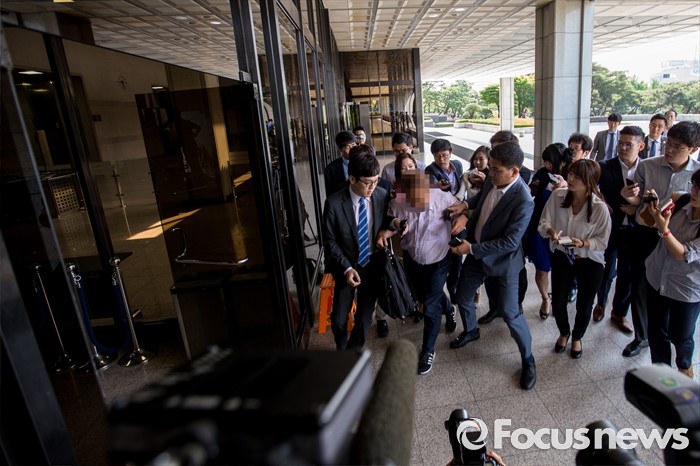 (서울=포커스뉴스) 옥시측으로부터 청탁을 받고 가습기 살균제 흡입독성 실험을 조작했다는 혐의를 받고 있는 호서대 유 모 교수가 1일 오전 서울 서초구 서울중앙지방검찰청으로 조사를 받기 위해 소환되고 있다.