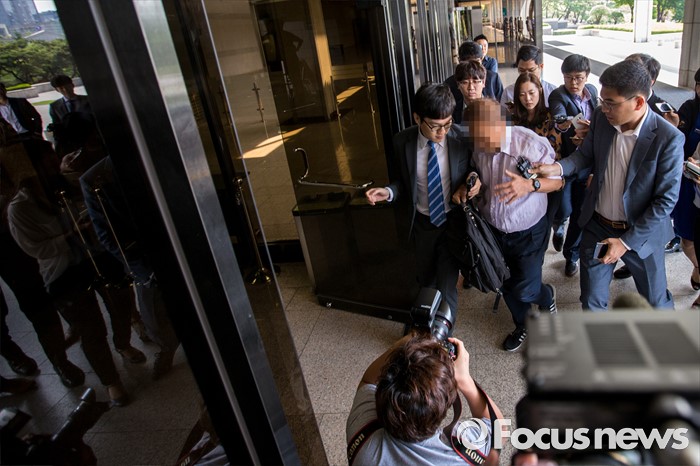(서울=포커스뉴스) 옥시측으로부터 청탁을 받고 가습기 살균제 흡입독성 실험을 조작했다는 혐의를 받고 있는 호서대 유 모 교수가 1일 오전 서울 서초구 서울중앙지방검찰청으로 조사를 받기 위해 소환되고 있다.
