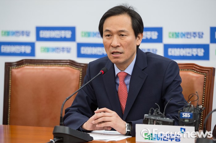 (서울=포커스뉴스) 우상호 더불어민주당 원내대표가 1일 오전 서울 여의도 국회 원내대표실에서 열린 서민주거TF 발족식에서 인사말을 하고 있다.