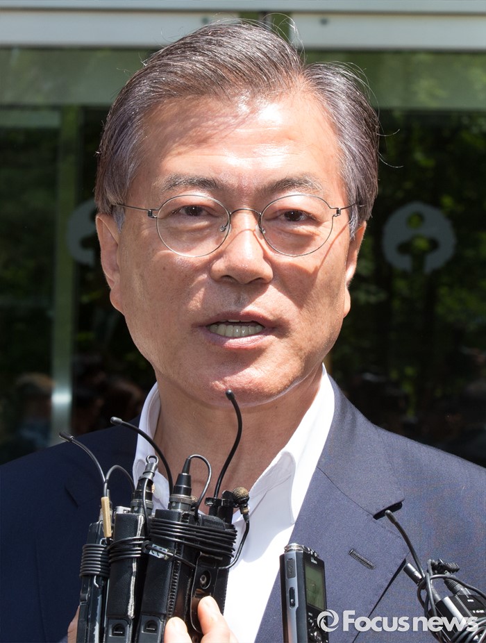 | △ 취재진 질문에 답변하는 문재인 |