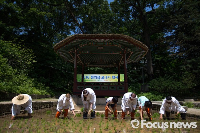 (서울=포커스뉴스) 1일 오전 서울 종로구 창덕궁 내 옥류천 청의정에서 손 모내기 행사가 열리고 있다. 손 모내기 행사는 조선시대 임금이 궁궐 안에 경작지를 조성, 그 해 농사의 풍년과 흉년을 예상해보기 위해 시행했던 친경례(親耕禮) 의식의 의미를 되살린 것이다.