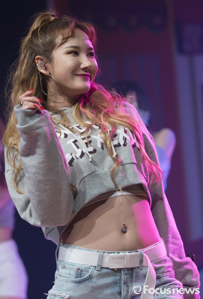 (서울=포커스뉴스) 1일 오전 서울 강남구 일지아트홀에서 열린 걸그룹 EXID의 정규 1집앨범 'STREET' 발표 쇼케이스에 참석한 멤버 LE가 신곡무대를 선보이고 있다.
