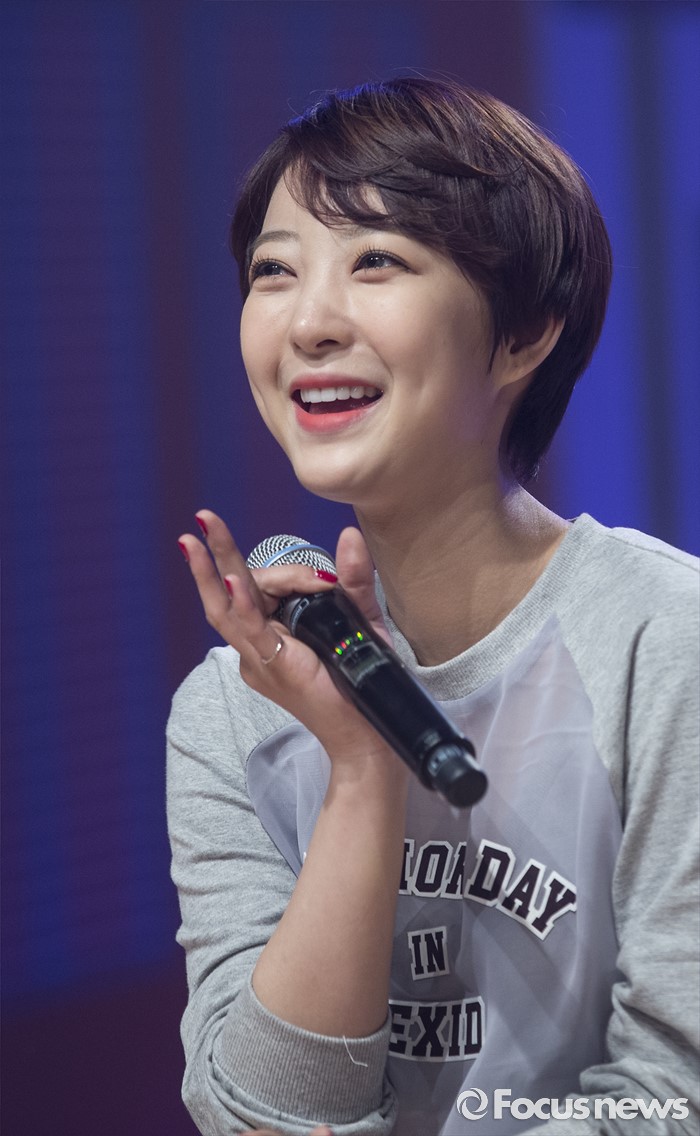 (서울=포커스뉴스) 1일 오전 서울 강남구 일지아트홀에서 열린 걸그룹 EXID의 정규 1집앨범 'STREET' 발표 쇼케이스에 참석한 멤버 혜린이 미소를 짓고 있다.