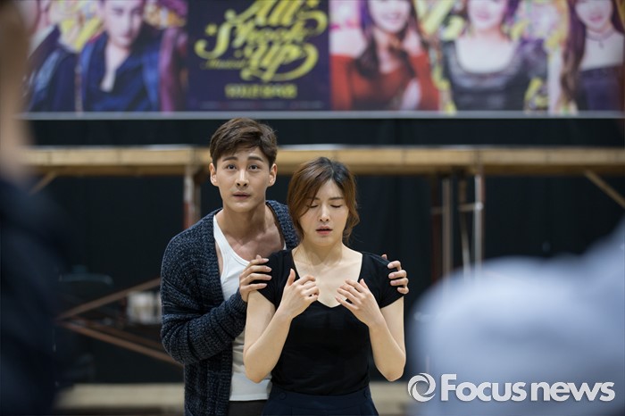 (서울=포커스뉴스) 최우혁과 안시하가 1일 오후 서울 종로구 아리온 연습실에서 열린 뮤지컬 '올슉업' 연습공개 현장에서 연기를 선보이고 있다.