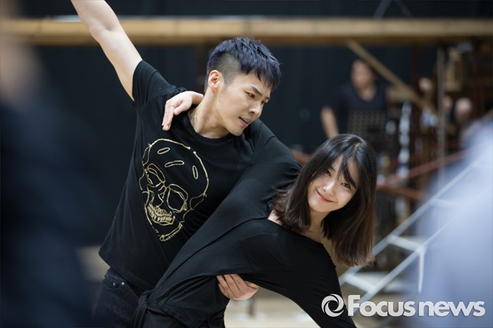 (서울=포커스뉴스) 가수 휘성이 1일 오후 서울 종로구 아리온 연습실에서 열린 뮤지컬 '올슉업' 연습공개 현장에서 연기를 선보이고 있다.