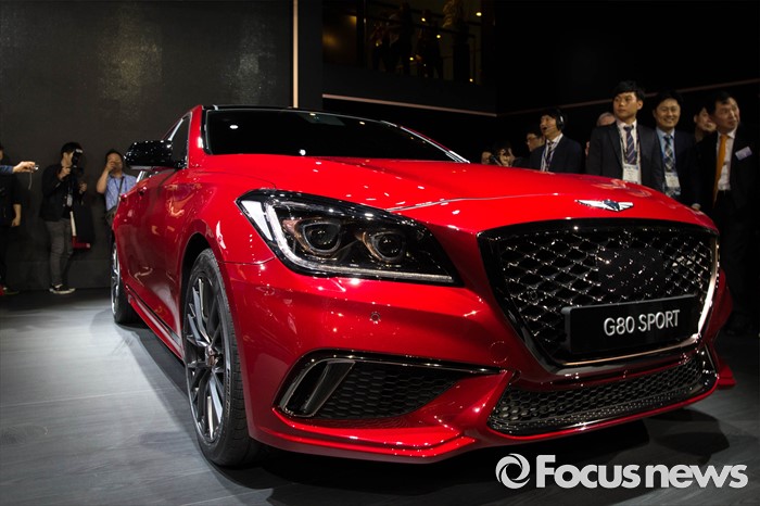 (부산=포커스뉴스) 2일 오전 부산 해운대구에 위치한 벡스코에서 열린 '2016 부산국제모터쇼'에 현대의 프리미엄 브랜드 '제네시스 G80 SPORT' 차량이 소개되고 있다.