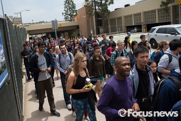 캘리포니아대는 1일 오후 12시5분 상황이 종료됐지만, 그날 수업을 모두 취소했다.(캘리포니아/미국=신화/포커스뉴스) 1일(현지시간) 오전 미국 캘리포니아 주 로스앤젤레스 캘리포니아(UCLA) 대학 캠퍼스에서 총격으로 2명이 숨지는 사고가 발생했다. 이날 학생들이 긴급히 학교를 빠져나오고 있다. 용의자는 총격을 저지른 후 스스로 목숨을 끊은 것으로 밝혀졌다. (Xinhua/Yang Lei) 2016.06.02 신화/포커스뉴스