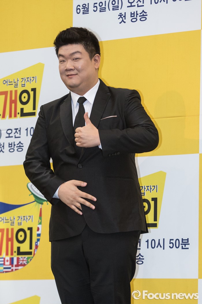 (서울=포커스뉴스) 2일 오전 서울 영등포구 KBS신관 웨딩홀에서 열린 KBS새 예능 프로그램 '어느날 갑자기 외.개.인' 제작발표회에 참석한 개그맨 유민상이 포토타임을 갖고 있다.