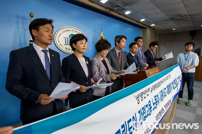 (서울=포커스뉴스) 이인영 더불어민주당 을지로위원회 의원이 2일 오후 서울 여의도 국회에서 구의역 스크린도어 간접고용 노동자 사망사고 재발방지 법안발의 관련 기자회견을 하고 있다.