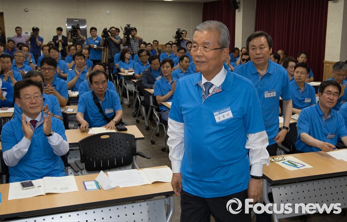 (괴산=포커스뉴스) 김종인 더불어민주당 비대위 대표가 1일 오후 충북 괴산 성불산자연휴양림에서 열린 충북도당 핵심당직자 워크숍에 참석, 인사말을 하기 위해 단상으로 이동하고 있다.