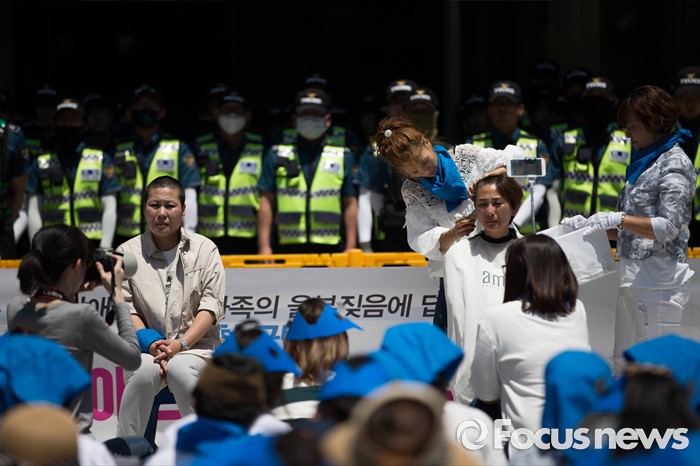 (서울=포커스뉴스) 2일 오후 서울 중구 서울시청 정문 앞에서 장애인부모연대원들이 발달장애인 정책수립을 촉구하며 삭발식을 하고 있다.