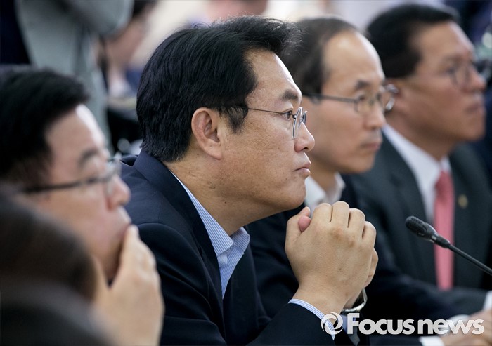 | △ 기상청 방문해 미세먼지 관련 브리핑 듣는 與 |