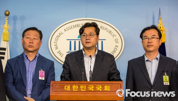 (서울=포커스뉴스) 홍익표 더불어민주당 의원이 2일 오후 서울 여의도 국회에서 열린 '남북경협기업 생존대책마련 촉구 기자회견'에 참석해 정부에 개성공단 재개 및 금강산 관광 재개 등을 촉구 하고 있다.
