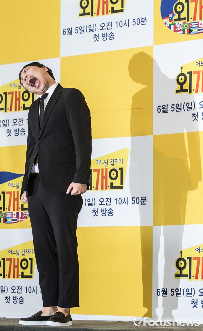 (서울=포커스뉴스) 2일 오전 서울 영등포구 KBS신관 웨딩홀에서 열린 KBS새 예능 프로그램 '어느날 갑자기 외.개.인' 제작발표회에 참석한 개그맨 이상준이 포토타임을 갖고 있다.