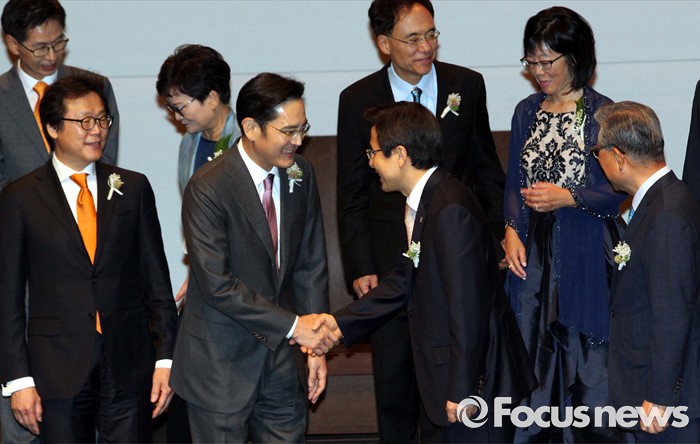 (서울=포커스뉴스) 1일 오후 서울 중구 호암아트홀에서 열린 제26회 호암상 시상식에 참석한 황교안 국무총리와 이재용 삼성전자 부회장이 악수하고 있다.