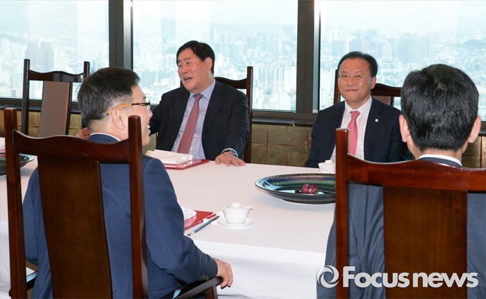 (서울=포커스뉴스) 최경환 새누리당 의원이 2일 오후 서울 여의도 한 중식당에서 20대 총선 대구지역 당선 의원들과 오찬을 하고 있다. 이날 오찬에는 곽대훈, 곽상도, 윤재옥, 정태옥, 추경호 의원 등이 참석했다.