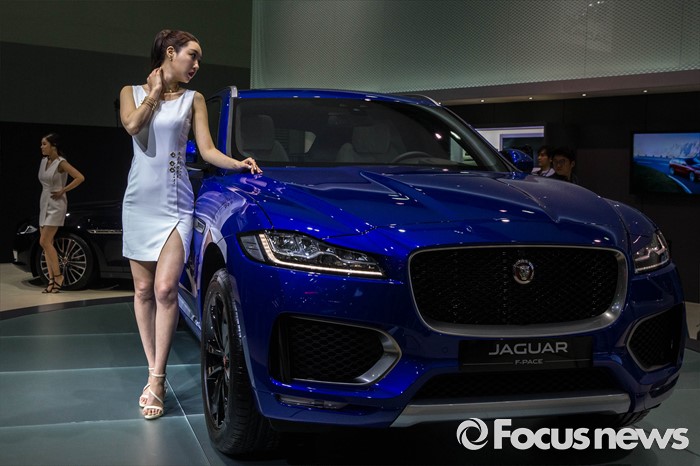 (부산=포커스뉴스) 2일 오전 부산 해운대구에 위치한 벡스코에서 열린 '2016 부산국제모터쇼'에서 재규어사의F-PACE 차량이 전시되어 있다.