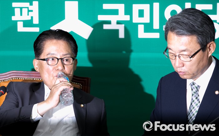 (서울=포커스뉴스) 2일 오전 서울 여의도 국회에서 열린 국민의당 원내정책회의에 참석한 박지원 원내대표가 물을 마시고 있다. 오른쪽은 김성식 정책위의장.