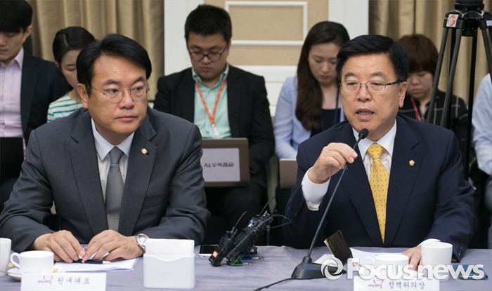 (서울=포커스뉴스) 2일 오전 서울 여의도 국회 귀빈식당에서 열린 미세먼지 대책 관련 당정협의에 참석한 김광림 새누리당 정책위의장이 발언하고 있다. 왼쪽은 정진석 원내대표.