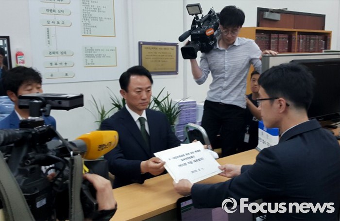 (서울=포커스뉴스) 김명진 국민의당 원내대표 비서실장이 1일 오후 서울 여의도 국회 의안과에서 임을 위한 행진곡 5·18 기념곡 지정 등의 내용이 포함된 박지원 의원 대표발의 '5·18 민주화운동 등에 관한 특별법 일부개정법률안'을 제출하고 있다