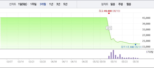 앞서 농협은행과 국민은행은 보유 중이던 삼부토건 주식을 5월19일 전량 처분했다. 농협은행은 삼부토건 5.94% 주식 전량을, 국민은행 역시 12.03%의 주식 전량을 처분했다고 공시했다.주가흐름<사진출처=네이버 캡쳐>