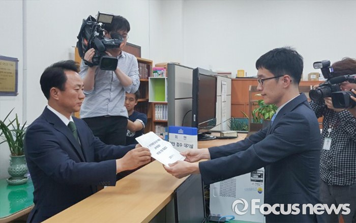 (서울=포커스뉴스) 김명진 국민의당 원내대표 비서실장이 1일 오후 서울 여의도 국회 의안과에서 임을 위한 행진곡 5·18 기념곡 지정 등의 내용이 포함된 박지원 의원 대표발의 '5·18 민주화운동 등에 관한 특별법 일부개정법률안'을 제출하고 있다