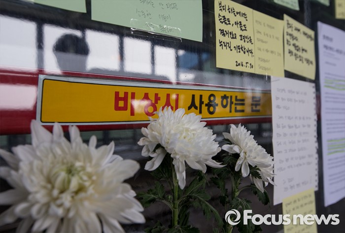 김씨는 지난달 28일 서울지하철 2호선 구의역에서 홀로 스크린도어 정비 작업을 하다 역으로 들어오는 열차에 치여 숨졌다.지난달 31일 오전 서울 광진구 지하철 2호선 구의역 스크린도어 사고 현장에 시민들의 추모 쪽지 및 국화가 붙어 있다. 2016.05.31 양지웅 기자