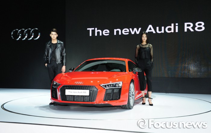 (부산=포커스뉴스) 아우디 코리아는 2일 진행된 ‘2016 부산국제모터쇼’ 프레스데이에서 올해 하반기 국내 출시를 앞둔 코리아 프리미어 모델 ‘뉴 아우디 R8 V10 플러스’와 ‘뉴 아우디 A6 올로드 콰트로’를 포함해 총 14종의 차량을 선보였다.