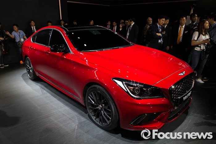 (부산=포커스뉴스) 2일 오전 부산 해운대구에 위치한 벡스코에서 열린 '2016 부산국제모터쇼'에 현대의 프리미엄 브랜드 '제네시스 G80 SPORT' 차량이 소개되고 있다.