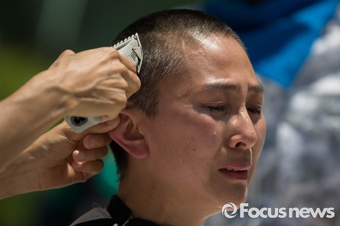 (서울=포커스뉴스) 2일 오후 서울 중구 서울시청 정문 앞에서 장애인부모연대원들이 발달장애인 정책수립을 촉구하며 삭발식을 하고 있다.