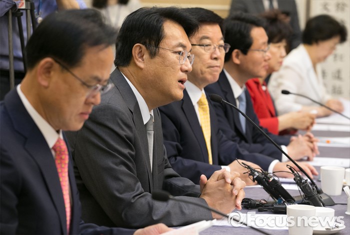 (서울=포커스뉴스) 2일 오전 서울 여의도 국회 귀빈식당에서 열린 미세먼지 대책 관련 당정협의에 참석한 정진석 새누리당 원내대표가 모두발언을 하고 있다.