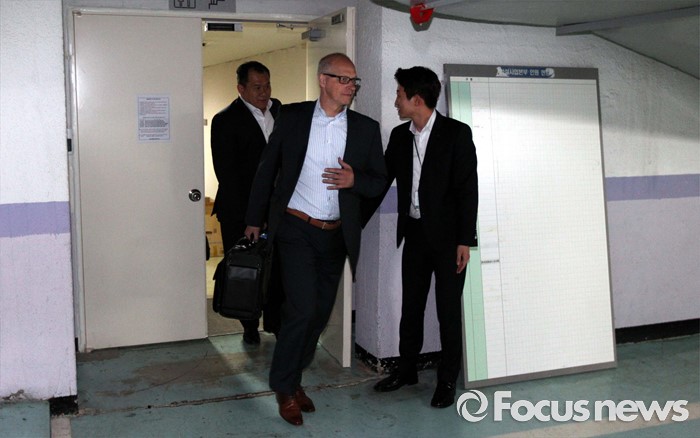 (서울=포커스뉴스) 2일 오후 서울 종로구 현대상선 본사에서 열린'G6' 해운동맹 회원사 협렵방안 회의에 참석한 제3 글로벌 해운동맹 디 얼라이언스 소속 해외 선사 관계자들이 회의를 마친 뒤 주차장으로 향하고 있다.
