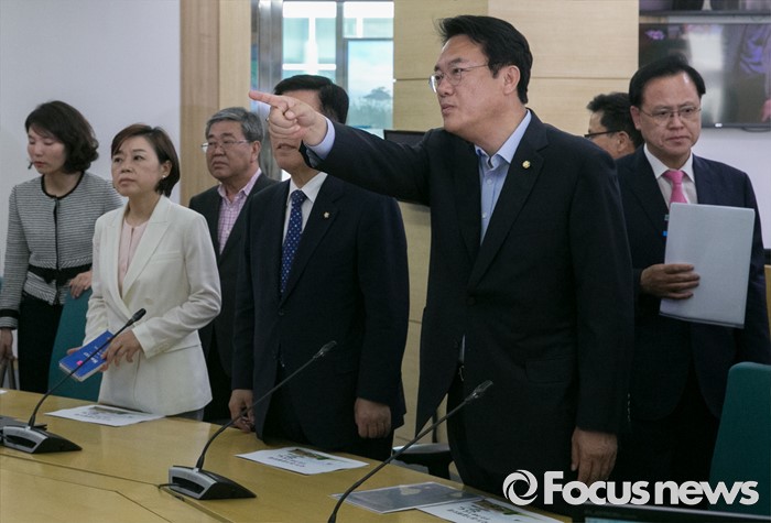 (서울=포커스뉴스) 미세먼지 대책과 관련해 현장 방문에 나선 정진석 새누리당 원내대표와 의원들이 1일 오후 서울 동작구 기상청을 방문해 종합상황실을 살펴보고 있다.