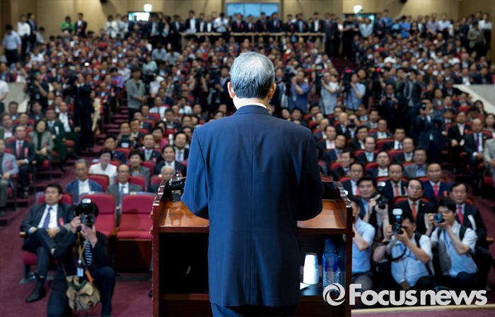 김 위원장은 방명록에 "국민의 행복과 안전, 기본권 보장을 책임지는 정당, 그 혁신을 국민 중심으로 이루겠습니다"고 기록했다.2일 오후 서울 여의도 국회 의원회관에서 열린 새누리당 4차 전국위원회에서 공식 선출된 김희옥 혁신비대위원장이 인사말을 하고 있다. 2016.06.02 박동욱 기자