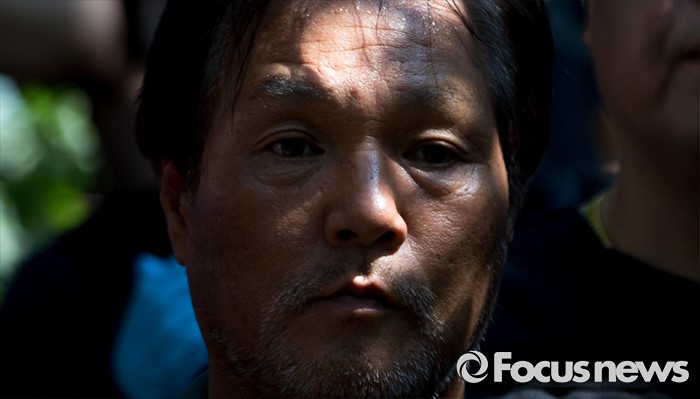 (서울=포커스뉴스) 지난 29일 서울 노원구 수락산 등산로에서 60대 여성을 살해한 피의자 김학봉(61)이 3일 오전 범행장소에 도착해 현장검증을 준비하고 있다.