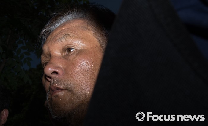 (서울=포커스뉴스) 지난 29일 서울 노원구 수락산 등산로에서 60대 여성을 살해한 피의자 김학봉(61)이 3일 오전 범행장소에서 현장검증을 마치고 호송차로 향하고 있다.