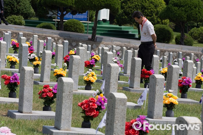 (서울=포커스뉴스) 현충일을 사흘 앞둔 3일 오전 서울 동작구 국립서울현충원에서 한 시민이 국가유공자묘역을 찾고 있다.