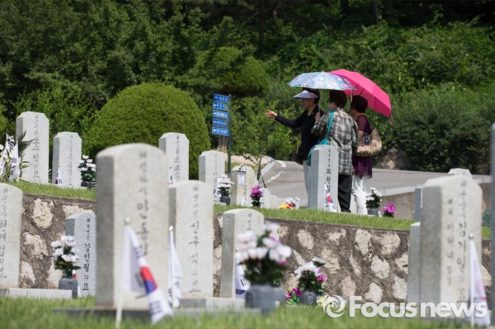(서울=포커스뉴스) 현충일을 사흘 앞둔 3일 오전 서울 동작구 국립서울현충원에서 시민들이 국가유공자묘역을 찾고 있다.