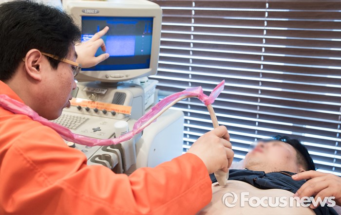 (서울=포커스뉴스) 26일 오전 서울 서초구 서울 365MC 병원에서 이성훈 원장이 초음파 검사를 하고 있다.