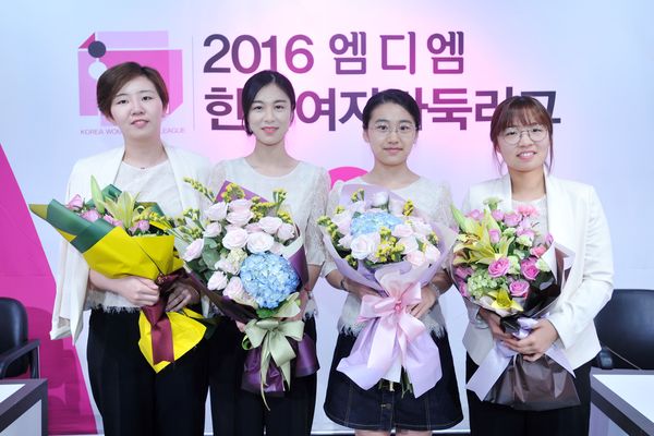 지난 2월 16일 개막식을 시작으로 4개월여의 열전을 벌여 서울 부광탁스를 챔피언으로 배출한 ‘2016 한국여자바둑리그’의 시상식은 7월5일 서울 잠원동에 위치한 더리버사이드호텔에서 열릴 예정이다.왼쪽부터 김나현 초단, 김신영 초단, 위즈잉 5단, 최정 6단. <사진출처=부광약품>