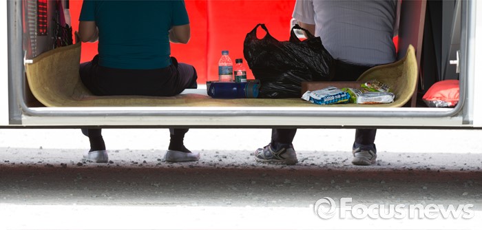 (세종=포커스뉴스) 최고 기온이 30도 가까이 오르며 초여름 날씨를 보인 3일 오후 세종시 정부세종청사 주차장에서통근버스 기사들이 트렁크에서 더위를 피해 휴식을 취하고 있다.