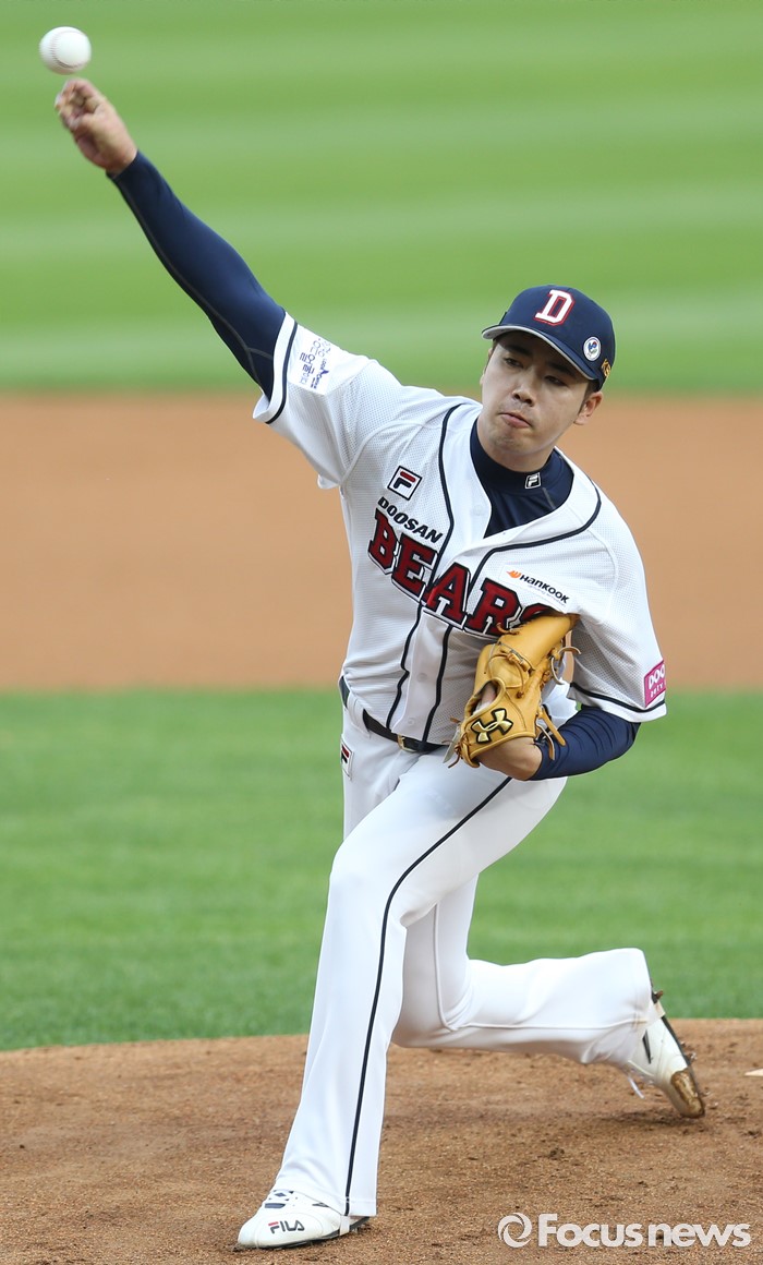 (서울=포커스뉴스) 3일 서울 잠실구장에서 열린 2016프로야구 SK-두산 경기에서 1회초 두산 선발투수 고원준이 투구하고 있다.