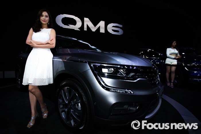 (부산=포커스뉴스) 3일 오후 부산 해운대구 벡스코에서 '2016 부산 국제모터쇼'가 공식 개막한 가운데 레이싱걸이 관람객들을 향해 포즈를 취하고 있다. 이번 국제모터쇼는 오는 12일 까지 계속 된다.