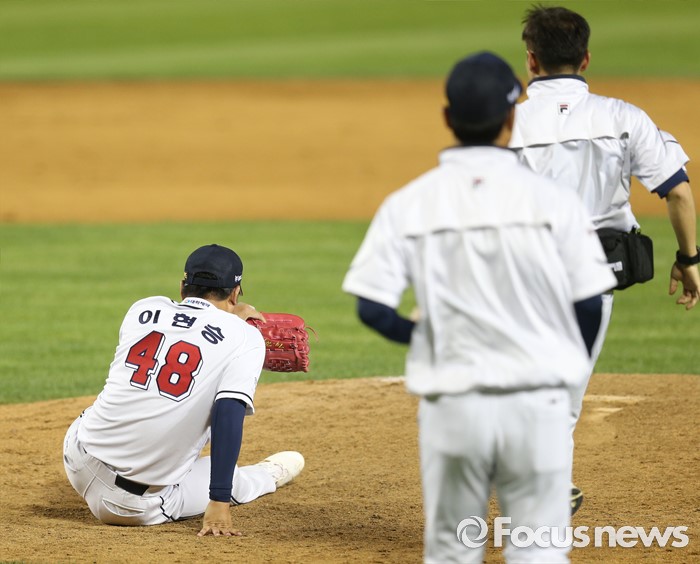 | △ 마운드에 주저 앉은 두산 이현승 |