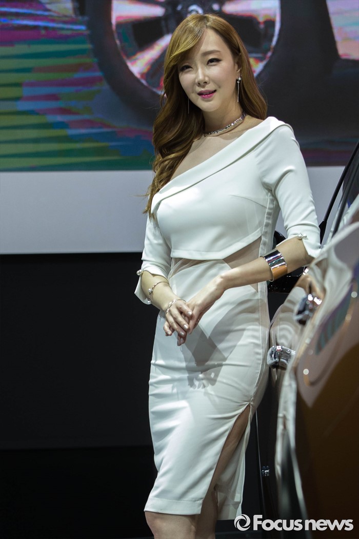 (부산=포커스뉴스) 3일 오후 부산 해운대구 벡스코에서 '2016 부산 국제모터쇼'가 공식 개막한 가운데 레이싱걸이 관람객들을 향해 포즈를 취하고 있다. 이번 국제모터쇼는 오는 12일 까지 계속 된다.